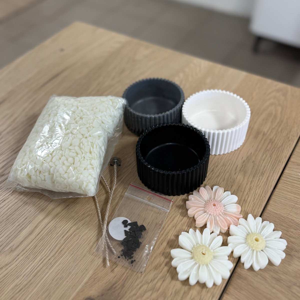 Izmēģini izliet savas pirmās sveces. Komplektā iekļauts viss nepieciešamais trīs svecēm. Katrs trauks ir unikāls, tapēc ir pieļaujams kāds neliels gaisa burbulītis, kas lietošanai netraucēs.